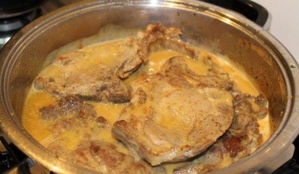 Carne de porc cu ciuperci în sos de muștar