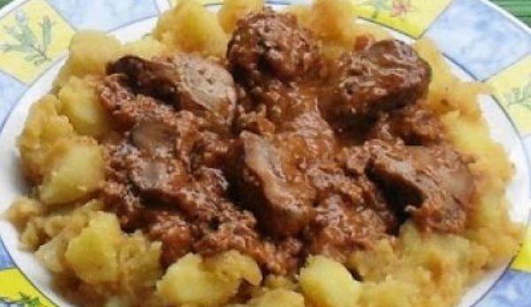 Mod de Preparare: Cartofi se curata se taie cubulete si se pun la fiert in apa cu sare. Ceapa o taiem marunt si o punem la calit in ulei incins, o lasam pana devine traslucida si punem boiaua, amestecam bine. Punem si cartofii scursi de apa in care au fiert. Amestecam usor si dam deoparte. Ficateii spalati si curatati de pielite se taie cubulete, ii tavalim prin faina si punem intr-o cratita cu ulei incins. Amestecam usor sa nu se prinda de fund si completam cu putina supa sau apa, cat si acopere. Ii lasam sa fiarba inabusit 10 minute, le dam gust cu sare si piper. Cine doreste poata sa puna si usturoi.