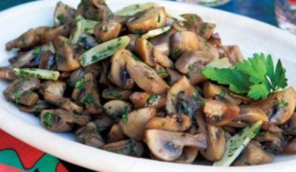 Mod de preparare: Uleiul se încinge într-o tigaie, la foc mic. Se adaugă usturoiul şi se căleşte 1 minut, până începe să se înmoaie. Se pun ciupercile. Se gătesc 10 minute în ulei, apoi se adaugă vinul (ingredientul secret). Se lasă pe foc 15-20 de minute, până se evaporă apa lăsată şi ciupercile capătă o culoare arămie. Din când în când se amestecă, având grijă să nu se prindă de cratiţă. Când sunt aproape gata, se potrivesc de sare şi piper. La final se adaugă pătrunjelul. Ciupercile se servesc calde.