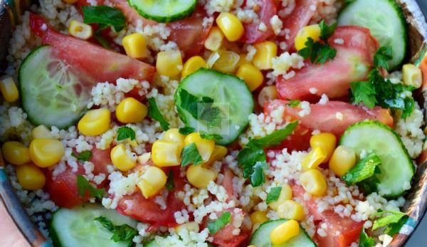 Mod de Preparare: Pregatim cuscus-ul conform instructiunilor de pe pachet. Castravetele il taiem in rondele si apoi in sferturi. Patrunjelul il taiem marunt. Sosul il preparam din zeama de lamaie, sare, piper, pudra de usturoi si 2 linguri de ulei de masline. Amestecam totul, sfaramam si branza si salata este gata. Este minunata salata, proaspata si foarte satioasa!