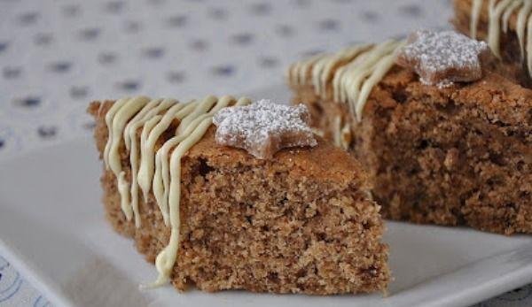 Untul moale (tinut cateva ore la temperatura camerei) se bate spuma cu zaharul tos si cel vanilinat, cu praful de scortisoara, ouale si cafeaua rece. Se adauga nucile macinate si ciocolata rasa si se amesteca totul cu mixerul 2 minute la viteza maxima. Se incinge cuptorul la 180 grade C. Aluatul se aseaza intr-o tava tapetata cu hartie de copt si se coace timp de cca. 25 minute. Dupa cum vedeti, folosit tava mea dreptunghiulara care s-a dovedit a fi un pic prea mica pentru rezultatul final al prajiturii pe care o doream mai ingusta. Asadar, va propun sa folositi tava mare de aragaz asta daca nu va deranjeaza lucrurile astea marunte care ma macina pe mine. Blatul se lasa la racit:Arata fain si asa pana la urma adica acum cand ma uit la el nu mai imi pare atat de inalt niste pitici pe creier cam zbuciumati, Prajitura se taie in forma de romburi:Se topeste ciocolata alba, se toarna intr-o punga si se taie un colt. Se orneaza romburile cu dungi subtiri de ciocolata.
