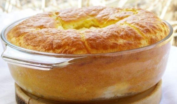 Cuptorul il pornesti din timp, sa ajunga la 200 de grade. Intr-o oala cat vasul de yena de incapatoare pui laptele, il amesteci cu amidonul si pui pe foc mic chiar pana incepe sa fiarba. Trebuie sa amesteci bine si constant, mai ales la inceput pentru ca vei avea senzatia ca amidonul se "pietrifica" pe fundul oalei cu lapte dar in final se va face ca o crema. Separat, untul il topesti la bain-marie si il amesteci cu faina pusa in ploaie, pana nu mai raman cocoloase si mai fierbi un pic, de data aceasta pe foc mic (nu la bain-marie) pana ce faina devine putin aurie. Torni peste amestecul de lapte cu amidon dupa ce acesta a fost luat de pe foc. Amesteci energic, pui sare si piper si lasi putin sa se raceasca, va avea consistenta unui sos foarte gros. Separi ouale si bati albusurile bine de tot. Torni in oala cu sosul cel gros cate-un galbenus pe rand, amestecand dupa fiecare, adaugi cascavalul ras. Apoi, cu o lingura de lemn incorporezi albusurile batute spuma, cu o miscare de rasturnare, dinpre fundul vasului in sus, pana s-a omogenizat totul. Torni in vasul tapetat cu unt si faina si dai la cuptorul preincalzit la 200 de grade, 25 de min.
