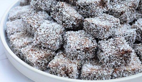 Intre timp faceti glazura de ciocolata, amestecand toate ingredientele la foc foarte mic. Folositi glazura cat e calda pentru o mai buna intindere. Pe o folie de aluminiu asezati bucatile de prajitura, turnati cate putina glazura apoi intoarceti bucatile pentru a le putea acoperi cu glazura pe toate partile. Intr-o fardurie puneti nuca de cocos. Dati bucatile glazurate prin nuca de cocos si apoi asezati pe o farfurie. Vor iesi aproximativ 16 bucati de prajitura. Puteti servi asa cum sunt sau puteti forma un sandwich din doua bucati de prajitura intre care turnati crema de lamaie.