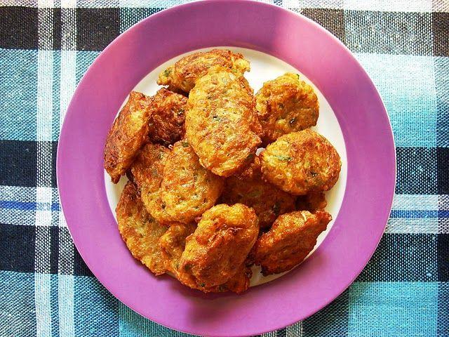 Ingrediente: un dovlecel marisor, o vanata mai micuta, 3 cepe mici, un ou, vreo trei linguri de faina si verdeata.