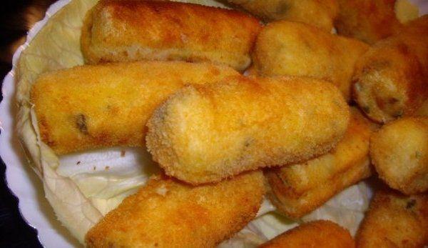 Mod de Preparare: Spalam cartofii timp de circa 40 de minute din momentul cind incepe apa sa fiarba. Le scurgem de apa, le curatim si strivim, daca avem un instrument pentru strivit cartofii, daca nu, cu o furculita. Amestecam piureul obtinut, impreuna cu un pic de sare, un pic de marar si patrunjelul spalat si taiat marunt, parmezanul si galbenusurile de ou. Amestecam bine ingredientele, vom obtine o compozitie molcuta si lipicioasa, iar acum ne pregatim cu minutele infainate sa facem crochetele in mijlocul carora vom pune o bucatica de philadelphia. Trecem crochetele prin faina, apoi prin albusurile batute spuma si la sfirsit prin pesmet si le prajim in mult ulei fierbinte pentru circa 3-4 minute, intorcindu-le pe ambele parti. Le scoatem intr-o farfurie pe hirtie absorbanta si le servim calde, calde pe pat de salata. Usor de facut si usor de mincat, pe gustul celor mici si mofturosi dar si a celor mari.