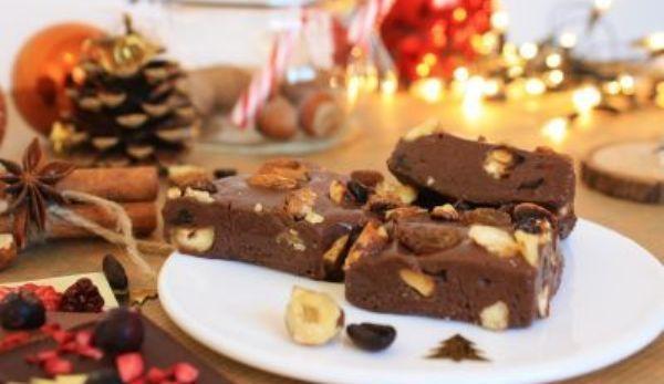 Mod de Preparare: Se pun într-o crăticioară apa, zahărul, zahărul vanilat și sarea, se amestecă până se dizvola și se lasă la fiert la foc mic, amestecând des, până ce se formează un sirop. Că să știm când este gata, se picură puțin sirop în apă rece, când picătura nu se răspândește, se oprește focul. Se topește untul parțial și se adaugă peste sirop, amestecând până se încorporează complet, apoi se adaugă vanilia. Separat, se amestecă laptele praf cu cacao și apoi se adaugă treptat în sirop, mixând bine. După ce s-a încorporat amestecul uscat, se pot adăuga alunele, stafidele și nucile și se amestecă. Se tapetează un vas cu folie alimentară și se adaugă compoziția, nivelând bine. Se lasă la răcit într-un loc răcoros (nu în frigider) pentru 4-5 ore.