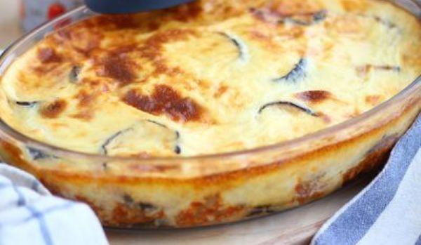 Sosul alb: Intr-o cratita se topeste untul si se adauga faina. Se amesteca bine. Adaugati laptele treptat, amestecand bine cu un tel. In cazul in care amestecul are cocoloase, utilizati repede un mixer. Se amesteca pe foc pana cand sosul alb se ingroasa. Luati de pe foc si adaugati oul batut. Amestecati rapid. Intr-un vas rezistent la caldura uns cu ulei de masline, puneti la baza, vinetele (jumatate din cantitate). Se adauga carnea si se niveleaza. Se acopera cu restul de vinete, apoi se toarna sosul alb. Coaceti 35 minute la 180°C si fiti atent la preparat. Gata!