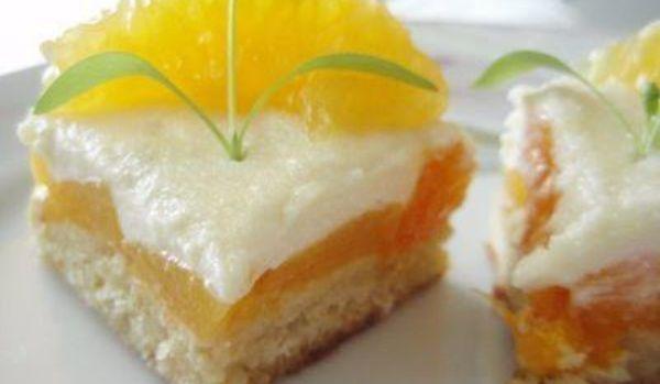 Se face jeleul de fructe respectand instructiunile de pe pliculet. Pe blatul copt si racit se aseaza fructele din compot, taiate in jumatati (caisele), alternand caisele/piersicile in cazul meu cu mandarine. Se toarna crema in strat uniform, apoi se acopera cu jeleul de fructe si se orneaza cu felii de mandarine si fistic. Se lasa la rece 2-3 ore si se taie bucati.