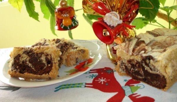 Mod de preparare: Albusurile se bat spuma cu un praf de sare si putina zeama de lamaie, se adauga treptat zaharul si se mixeaza bine, adaugi galbenusurile pe rand, esentele si faina in ploaie amestecand usor de jos in sus. Ultimul se adauga uleiul. Nucile trebuiesc date putin la cuptor dar aveti grija sa nu se arda, iar apoi indepartati coaja de deasupra Se tapeteaza o forma de chec si se pune din aluat pastrand un sfert din el. Deasupra punem o mana de nuci tocate si restul le oprim pentru crema. Aluatul oprit se amesteca cu cacaoa cernuta si nucile (o parte tocate marunt si o parte rasnite praf). Va rezulta o crema mai groasa care se pune deasupra aluatului, se trece cu furculita prin el si se da la cuptor pentru 40-50 de minute potrivind cuptorul la foc mic.
