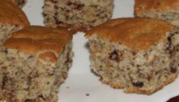 Mod de Preparare: Se bat galbenusurile cu zaharul, adaugam zaharul vanilat, esenta de vanilie si amestecam bine pana se albesc galbenusurile. Adaugam treptat laptele, faina amestecata cu praful de copt, apoi nuca macinata si fulgii de ciocolata. Adaugam si albusurile batute spuma si amestecam usor cu o lingura de jos in sus. Punem compozitia intr-o tava unsa cu unt si se da la cuptor pentru 30-40 minute.