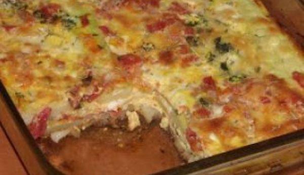Mod de Preparare: Dovleceii se spala si se taie pe lungime. Rosiile se oparesc, se inlatura pielita si se taie cubulete. Ceapa si usturoiul se curata si se toaca. Cartofii se pun la fiert, apoi se curata de coaja si se taie felii. Verdeata se spala si se toaca marunt. Incingem cuptorul la 200 grade C. Calim ceapa si usturoiul in 2-3 linguri de ulei, adaugam rosiile si lasam sa fiarba 10 minute. Condimentam cu sare si piper. Intr-un castron facem sosul de branza. Batem oualele, adaugam laptele, smantana si branza rasa. Condimentam cu sare, piper si nucsoara. Ungem cu unt o forma termorezistenta. Asezam straturi alternative de cartofi, dovlecei, verdeata, rosii si sos de branza. Incheiem cu strat de sos de branza. Punem si untul in gramajoare pe toata suprafata tavii. Da la cuptor pentru ~ 60 minute. Cand scoatem din cuptor presaram rozmarin deasupra.