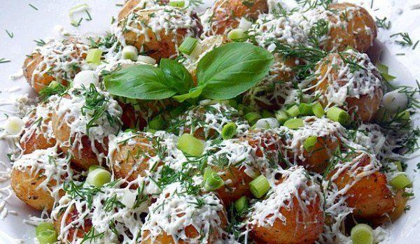 Mod de Preparare: Spălăm bine cartofii. Este bine ca aceştia să fie proaspeţi şi cum sunt noi, coaja nu este obligatoriu a fi curăţată. Spălarea este suficientă şi prin coacere, coaja va deveni crocantă. Dacă consideraţi necesară, din diverse motive, curăţarea cartofilor, o puteţi face. Îi punem într-o tavă, punem 2-3 linguri de ulei şi presărăm peste ei sare, cimbru şi piper. Îi amestecăm cu mâna să-i cuprindă uleiul şi condimentele. Băgăm tava la cuptor să se coacă cartofii. Din când în când, deschidem cuptorul şi agităm puţin tava să ma răscolim oleacă cartofii. Când sunt rumeniţi, îi încercăm cu o furculiţă dacă s-au pătruns şi au devenit pufoşi. Scoatem cartofii pe un platou sau farfurie mai largă şi presărăm peste ei mărarul tocat. Răzuim peste ei brânza telemea. Tăiem rondele usturoiul sau ceapa verde şi presărăm rondele peste brânză. Cartofii trebuie să fie fierbinţi când răzuim brânza pentru ca aceasta să se topească. Se acoperă farfuria cu cartofii fierbinţi cu o alta farfurie pentru a ajuta branza să se topescă. Serviți pe post de garnintură sau ca o gustare, aceşti cartofi noi cu mărar si branză se mănâncă şi sunt delicioşi calzi.