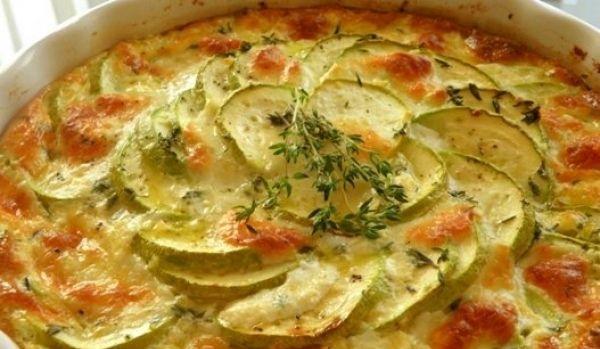 Mod de Preparare: Taiati dovleceii spalati in prealabil, in felii subtiri. Aranjati-i intr-un vas potrivit pentru cuptor. Se amesteca ouăle cu smantana, sarea si piperul. Se toarna acest amestec peste dovlecei, apoi se presara cascaval ras. Coaceti 40 minute la 180°C. Gata!