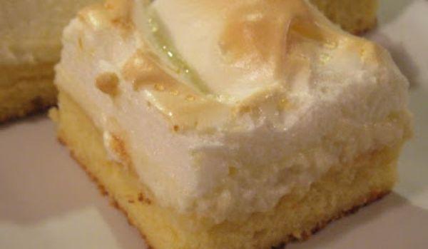 Se pune intr-o tava de aragaz (cele care vin odata cu aragazul) tapetata cu hartie de pergament. Se da la cuptorul incins in prealabil la 375F pana se rumeneste putin. Se mai da totul la cuptor la 325F de data aceasta pana se rumeneste bezeaua delicat.Se taie rece. Este excelenta.Imprima reteta.