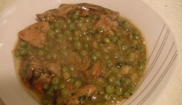 Se scoate si se da deoparte. Ceapa se toaca marunt, se caleste in uleiul ramas, peste se pune morcovul si pastarnacul tocati marunt, apoi telina. Cand sunt patrunse bine si incep sa se rumeneasca, se adauga mazarea si cam o cana de apa si se lasa sa fiarba. Se potriveste cu sare si piper.