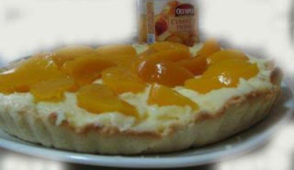 Mod de Preparare: Untul si oualele trebuie sa fie la temperatura camerei. Se freaca untul taiat cubulete cu zaharul pudra. Se adauga galbenusul si faina si se framanta un aluat, apoi se pun si cele 2 lg de apa. Initial va fi sfaramicios dar devine treptat ca o plastilina. Nu uitati sa nu il framantati mai mult decat este nevoie. Se pune aluatul intr-o punga sau folie si se pune la frigider pentru 1, 2 ore. Intre timp se poate prepara crema de cremsnit conform instructiunilor de pe pachet. Apoi se pun cubulete de persici in crema, dar nu uitati sa pastrati cateva pentru ornat. Forma de tarta se acopera inainte cu hartie de copt si apoi se intinde aluatul cu degetele. Foaia care ramane in afara tartei se taie cu foarfeca sa nu se arda. Se pune tarta la cuptor pentru 20 - 30 minute, pana se coace. Incercati cu scobitoarea aluatul. Se lasa la racit in forma si dupa aceea se scoate usor tinand de hartia de copt.