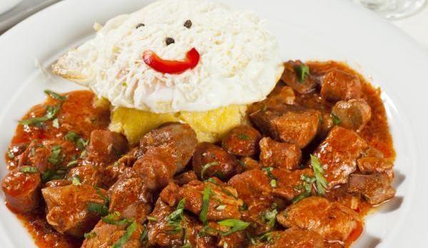 Mod de Preparare: Se pun la fiert morcovii, ardeii si telina taiate marunt, cu sare si apa cat sa le acopere, si se lasa la fiert astfel incat la blender sa se amestece foarte bine. Cand au fiert se pune apoi vinul si se mai lasa 10 minute. Cand s-a racit, totul se da prin blender. Puteti adauga patrunjelul si mararul in sos. Se caleste apoi carnea in bucatele cu o lingura de ulei. Se pun apoi ciupercile taiate in bucatele mari. Se taie intre timp ceapa, se pune peste ciuperci si se lasa pana se inmoaie. Tochitura se serveste cu ou ochi si sos de vin deasupra, iar la garnitura mamaliga.