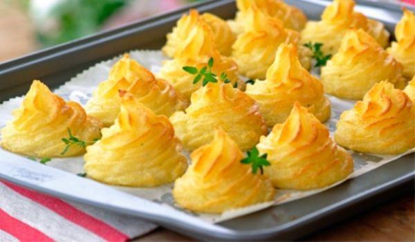 Mod de Preparare: Decojiti si taiati cartofii in bucati si fierbeti-i aproximativ 10 minute. Zdrobiti cartofii si adaugati untul. Dupa ce obtineti un piure fin, adaugati galbenusul, sare si piper. Amestecati bine. Umpleti cu piureul un posh si puneti un varf in forma de stea si formati cartofii dvs. duchess pe tava acoperita cu hârtie de pergament. Coaceti 20 minute la 200°C.