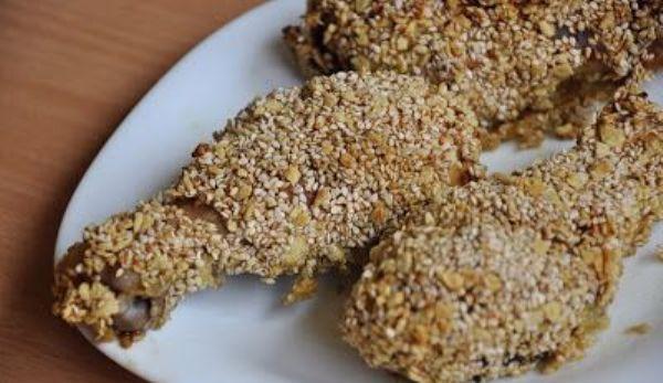 Se incinge cuptorul la 200 grade C. Copanelele se dau mai intai prin ou. Apoi, prin amestecul de susan. Apasati bine pentru ca amestecul sa se lipeasca de carne.