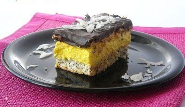 Mod de Preparare: Se bat albusurile spuma, apoi se adauga treptat zaharul pana se obtine o bezea. Apoi amestecand usor se incorporeazai treptat macul, nuca de cocos, praful de copt si faina. Intr-o tava de 22x30 cm, tapetata cu hirtie de copt, se rastoarna compozitia. se coace cca 30 minute la foc mijlociu in cuptorul preincalzit. Separat pregatim crema. Se freaca cele 6 galbenusuri cu zaharul, plicul de budinca dizolvat in cateva linguri de lapte. Restul de lapte se pune pe foc si cand este cald se adauga budinca. Se mesteca pana se ingroasa. Se ia de pe foc se acopera cu o folie de plastic ca sa nu faca crusta si se da la rece. Cand s-a racit budinca se incorporeaza treptat in margarina (untul) frecat spuma. Se intinde peste blatul racit. Peste crema se aseaza biscuiti cufundati intr-un sirop sau intr-o cafea indulcita. Ciocolata se topeste cu un cub de unt si 2-3 linguri de lapte, apoi se toarna peste biscuiti. Se da la frigider panna a doua zi, apoise taie in bucati. Nu va grabiti ca mine si inainte de a o taia, cufundati cutitul in apa calda. Asa se va taia frumos ciocolata fara sa se crape.