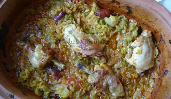 Mod de Preparare: mai intai scufundam vazul in apa timp de 20 de minute. Cat vasul sta in apa pregatim restul ingredientelor. Pulpele le saram bine pe ambele parti. Varza o taiem, la fel si morcovii, ardeiul capia si cel iute. Le adaugam in vas si le amestecam. Adaugam si carnea si carnaciorii.