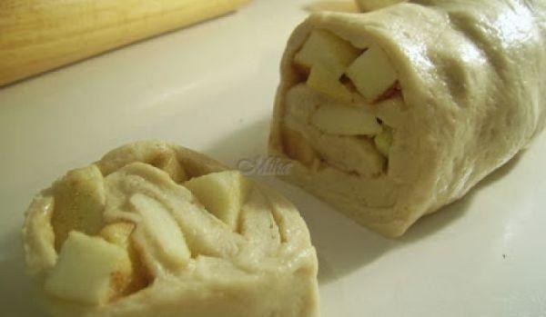 Mod de Preparare: Merele se curata de coaja, se taie cubulete si se presara cu zahar si scortisoara. Aluatul este cel clasic de gogosi. Se intinde intr-o foaie de 0.5 cm grosime, iar peste foaie se repartizeaza uniform cubuletele de mere. Se ruleaza cat mai strans posibil, apoi cu un cutit bine ascutit se taie felii de cca 2 cm. Se mai lasa putin pe masa la crescut, apoi se pun la prajit in baie de ulei. Se prajesc pe ambele parti, se scot pe prosop absorbant, apoi se pudreaza cu zahar din abundenta.