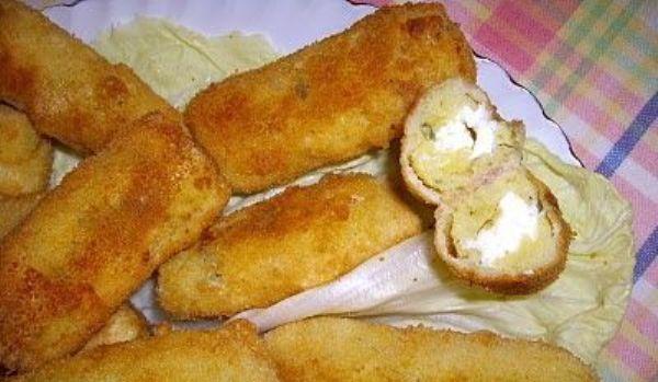 Mod de Preparare: Spalam cartofii timp de circa 40 de minute din momentul cind incepe apa sa fiarba. Le scurgem de apa, le curatam si strivim, daca avem un instrument pentru strivit cartofii, daca nu, cu o furculita. Amestecam piureul obtinut, impreuna cu un pic de sare, un pic de nucsoara, un pic de marar si patrunjelul spalat si taiat marunt, parmezanul si galbenusurile de ou. Amestecam bine ingredientele, vom obtine o compozitie molcuta si lipicioasa, iar acum facem crochetele in mijlocul carora vom pune o bucatica de philadelphia. Trecem crochetele prin faina, apoi prin albusurile batute spuma si la sfirsit prin pesmet si le prajim in mult ulei fierbinte pentru circa 3-4 minute, intorcindu-le pe ambele parti. Le scoatem intr-o farfurie pe hirtie absorbanta si le servim calde, pe pat de salata. Usor de facut si usor de mincat, pe gustul celor mici si mofturosi dar si a celor mari.