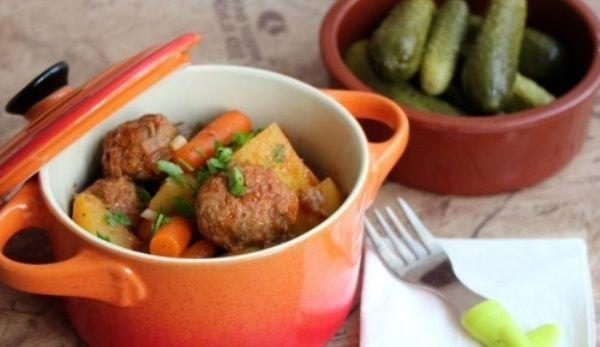 Mod de preparare: Tocam carnita, impreuna cu ceapa si patrunjelul. Adaugam un praf de sare, uleiul de masline si un ou si amestecam. Adaugam orezul spalat. Amestecam bine si formam bilute de carne. Punem la fiert o oala cu 2 l de apa. Cand apa incepe sa fiarba, adaugam perisoarele si le lasam la fiert cam 10-15 minute. Adaugam un praf de sare. Dupa ce s-au fiert, le scoatem si le lasam un pic la racit. Intr-o tigaie, incingem un pic de ulei masline, si punem usturoiul si ceapa verde tocate rondele. Lasam sa se rumeneasca un pic si adaugam cartoful taiat cubulete si morcoveii. Lasam la rumenit, adaugam un praf de sare. Punem si perisoarele si adaugam putin cate putin din zeama de carne si lasam la fiert. Intepam legumele sa vedem daca sunt patrunse si punem ultima transa de zeama si bulionul. Lasam sa scada zeama si sa formeze un sos. Dam deoparte si presaram patrunjel verde. Servim cu castraveti in otet.