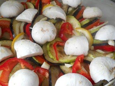 Mod de preparare: Incalziti uleiul intr-o tigaie si caliti ceapa pana se inmoaie. Adaugati ardeiul si ciupercile si caliti pentru cateva minute. Puneti rosiile, ierburile si dovlecelul. Turnati putina apa, daca este nevoie. Acoperiti si fierbeti pentru 20 de minute, pana cand legumele sunt moi.