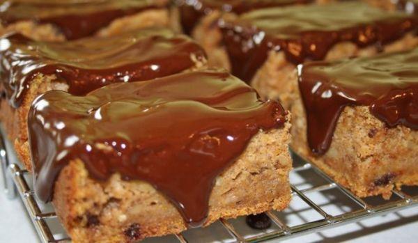 Glazura: Se poate face si la microunde, topind ciocolata si untul si omogenizam bine, sau, intr-o craticioara pe aragaz vom topi untul apoi vom adauga ciocolata topita pe baie de abur. Glazuram fiecare dreptunghi de prajitura cu ciocolata si o servim cu placere! Este deosebit de aromata, umeda si perfecta pentru o zi de toamna!