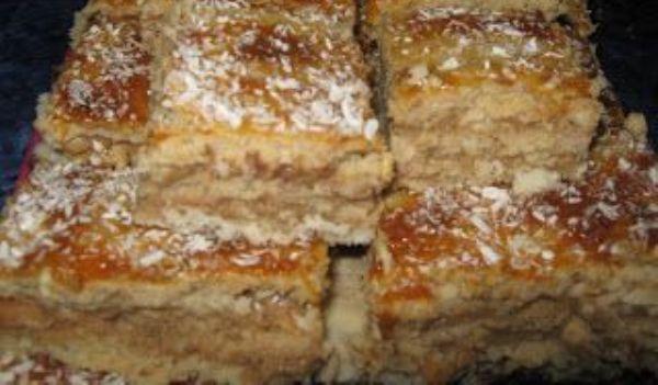 Mod de Preparare: Zaharul, zaharul vanilat, faina, nuca macinata si margarina se amesteca bine. Pana rezulta un aluat omogen (daca este nevoie se mai pune putina faina). Aluatul se imparte in trei parti.Si se intind trei foi care se coc pe dosul tavi.