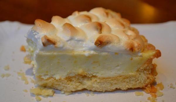 Incalzeste cuptorul la 190 de grade. Bate albusurile cu un mixer pana cand se intareste. Gradual, adauga cealalta jumatate de zahar, cate o lingura odata. Toarna crema peste aluatul prajiturii si niveleaz-o. Deasupra adauga albusurile de ou si foloseste spatele unei linguri ca sa creezi mici piscuri. Mai pune prajitura cu lamaie si bezea in cuptor inca cinci minute, pana cand bezeaua devine aurie
