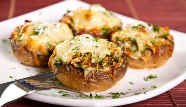 Mod de Preparare: Curatam ciupercile, le spalam si le punem la stors. Coditele le punem deoparte pentru sos, Intr-un vas pasam branza cu o furculita, adaugam la ea cei 3 catei de usturoi pisati si ei, patrunjelul verde tocat, 1 lingurita cu pasta de ardei, sare, piper alb dupa gust si 2 linguri cu ulei de masline. Amestecam pana se omogenizeaza compozitia si cu ajutorul unei lingurite umplem palarioarele ciupercutelor. In mijlocul fiecarei ciupecute umplute asezam cate o maslina. Le asezam intr-o tava si le dam la copt pentru circa 10-15 minute la foc potrivit in cuptorul preincalzit. In timp cat ciupercile se coc pregatim sosul de branza. Punem in tigaie 2 linguri ulei de masline, ½ ceapa taiata marunt si coditele ciupercilor taiate in patru. Adaugam circa 50 ml apa, condimentam cu sare si piper alb si lasam la calit timp de 2-3 minute pana apa scade. In acest moment adaugam branza dulce, amestecam, adaugam 1 lingurita pasta de ardei si 100 ml apa. Lasam sa fiarba impreuna pana apa scade si branza incepe sa sfaraie in tigaie. Presaram sosul cu maghiran. Asezam din sos pe farfurie si imprejurul ei, apoi punem ciupercutele coapte.