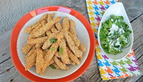 Mod de Preparare: Pieptul de pui se taie fasii se condimenteaza cu piper alb, boia dulce, praf de usturoi, sare si ghimbir. Se adauga si uleiul de masline si se lasa la marinat 30 min la frigider. Fasiile astfel pregatite se trec prin ou batut cu smantana apoi prin semintele de susan. Se aseaza pe o tava tapetata cu hartie de copt si se coc la foc potrivit. La jumatatea timpului de coacere se intorc ca sa se rumeneasca pe ambele parti.Intre timp preparam sosul astfel: smantana se amesteca cu condimentele, praf de usturoi dupa gust si piper. Definitivam gustul de sare si lasam la rece sa se intrepatrunda aromele. Pieptul cu susan se serveste alaturi de sos si cartofi prajiti sau natur dupa preferinta. Pentru prepararea acestei retete inspirat de la Sabina.