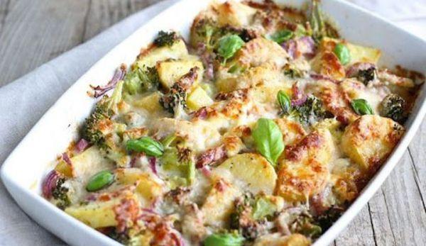 Mod de preparare: Curăţă, spală şi taie cartofii felii, iar apoi pune-i la fiert într-o oală mare cu apă şi puţină sare. Între timp, desfă bucheţelele de broccoli şi fierbe-le separat, ca şi cartofii. Între timp, spălă ciupercile şi tăie-le felii. Tăie ceapa şi ardeiul fâşii lungi şi căleşte-le într-o tigaie cu puţin ulei. Adăugă şi ciupercile şi lăsă-le să se înmoaie. Când cartofii şi broccoli au fiert, scoate-i cu o paletă şi scurgeţi-i prin sită punând-i în vase separate. Trebuie să foloseşti o tavă cu pereţii înalţi (poate fi şi un vas yena), însă înainte de a aşeza legumele unge-o cu puţin ulei sau cu unt. Aşază un strat de felii de cartofi, iar apoi un strat de telemea rasă şi din nou un strat de cartofi. Pune apoi un strat de ciuperci călite şi un strat de broccoli. Bate ouăle şi adăugaţi sarea şi condimentele. Toarnă compoziţia în tavă, iar apoi pune deasupra caşcavalul şi adaugă pătrunjelul verde tocat mărunt. De asemenea, poţi alterna altfel straturile de legume, după preferinţă, sau în funcţie de dimensiunea tăvii. Introduceţi tava în cuptor la 180 de grade Celsius. După ce s-a copt, lasă musacaua să se răcească şi apoi o poţi tăia pătrăţele. Este foarte bună şi caldă şi rece. O poţi servi şi alături de un file de peşte fript.