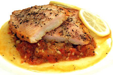 Ingrediente: 2 fileuri de pangasius, 4-5 rosii, 2-3 catei de usturoi, o ceapa, busuioc proaspat, 2 linguri de usturoi