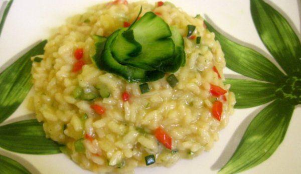 Mod de Preparare: Intr-o tigaie mare, se incinge uleiul de masline impreuna cu 2 linguri de unt; se adauga ceapa si usturoiul si se calesc la foc mic, circa 5 minute, fara sa se coloreze. Cand vegetalele sunt moi, se adauga orezul si se mareste flacara. Orezul va incepe sa se prajeasca putin, asa ca trebuie amestecat continuu. Dupa 1 minut va fi putin translucid. Atunci se adauga vinul si se amesteca in continuare, pana ce lichidul este aproape absorbit. Odata ce vinul a fost absorbit de orez, se adauga un polonic cu fond si 1/2 lingurita de sare. Se micsoreaza flacara si se lasa sa fiarba, in asa fel incat orezul sa nu se arda la marginile tigaii. Se tot adauga polonice cu bulion, pe masura ce cantitatea de lichid anterioara a fost absorbita, amestecand pentru ca amidonul sa iasa din boabele de orez. Acest proces va dura cam 15-20 de minute. Cand se adauga ultima transa de fond, se adauga si mazarea si fasolea pastai; se amesteca bine 1 minut, ca sa se incinga. Cand boabele de orez sunt fragede se ia tigaia de pe foc, se adauga restul de unt, branza Parmesan si patrunjelul. Se amesteca bine, apoi se acopera tigaia cu un capac si se lasa sa stea 5 minute. Aceasta etapa este foarte importanta, caci permite orezului sa capete textura cremoasa si suculenta. Se serveste risotto-ul imediat, cat timp isi pastreaza textura corecta, presarat, eventual, cu putina branza Parmesan, proaspat rasa, si decorat cu frunze proaspete de patrunjel.