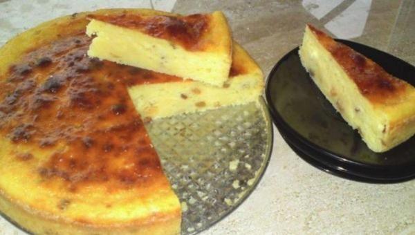 Mod de preparare: Înainte de orice trebui să preîncălzim cuptorul la temperatura de 160 de grade. În continuare vom separa cele 6 ouă. Luăm gălbenușurile și le frecăm bine cu zahărul, alături de unt și praful de sare. Acest procedeu continuă până când zahărul s-a topit în totalitate. Apoi putem adăuga brânza și smântâna, urmând să adăugăm și praful de copt, în timp ce amestecăm bine pentru a elimina cocoloașele. Albușurile se bat spumă, separat. Când s-au întărit suficient, se încorporează cu o spatulă în amestecul cu gălbenuş. Se adaugă vanilia, coaja de lămâie şi se amestecă uşor. La final se adaugă stafidele. Compoziţia se toarnă într-o formă rotundă unsă cu puţin unt. Se coace 45-50 de minute. Se serveşte caldă sau rece, după preferinţă.