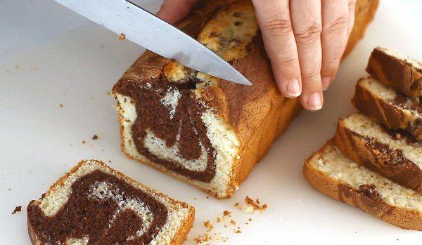 Mod de preparare: Separăm gălbenuşurile de albuşuri şi batem albuşurile cu un praf de sare până obţinem o spumă tare. Adăugăm treptat zahărul şi zahărul vanilat şi mixam până se topeşte. Batem gălbenuşurile cu uleiul pus ca la maioneza, adăugăm laptele şi coaja de lămâie. Încorporăm gălbenuşurile în albuşuri, amestecând uşor cu o spatulă de jos în sus. Adăugăm treptat făina cernută şi amestecată cu praful de copt. Tapetăm două tăvi mari de cozonac cu hârtie de copt, punem compoziţia şi oprim 5-6 linguri în vas, peste care adăugăm cele două linguri cu cacao şi amestecăm până se omogenizează. Adăugăm compoziţia de cacao astfel obţinută în tăvi peste compoziţia de chec şi facem diferite forme cu furculiţa. Dăm tăvile la cuptorul preîncălzit la foc mediu pentru cca 40 minute. Facem testul cu scobitoarea. Scoatem checul din tăvi şi îl presărăm cu zahăr pudră.