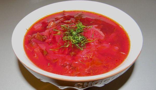 Cartofii tăiați cuburi se pun la fiert într-o oală mare cu 2 litri de apă, apoi restul de legume tăiate cuburi și ceapa călită. Când au fiert, se adaugă borșul cu sfecla, sare după gust.