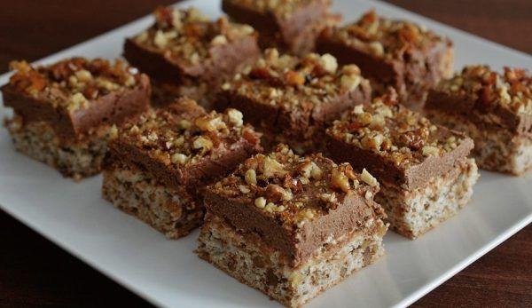 Blat: Separați albușurile de gălbenușuri. Mai întâi preparați blatul: într-un bol puneți cele 6 albușuri și le bateți spumă cu 120 g de zahăr pudră. Într-un alt recipient se adaugă 160 g de nucă pisată, 4 gălbenușuri frecate bine cu sare Făina se adaugă în ploaie, praful de copt, zahărul vanilat și amestecați ușor cu telul. Se pune compoziția într-o tavă cu (dimensiunile 28 x 18 cm) tapetată cu hârtie de copt. Temperatura din cuptorul preîncălzit este de 180°C, timp de 30 minute, până trece cu brio testul scobitorii...