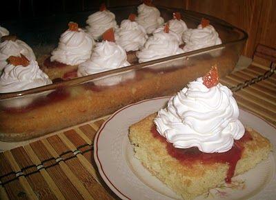 Uite cum se poate transforma o banala prajitura cu gris intr-un desert spectaculos. Reteta e mai mult orientativa, principiile ei de baza sunt: la 1 ou, 2 linguri zahar si 3 de gris. Adaptati in functie de tava. Eu am facut din 4 oua insa puteam sa pun linistita si 6 pentru ca nu mi-a iesit prea inalta.