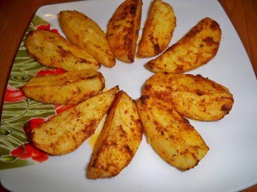 În timp ce se încălzeşte cuptorul, pune cartofii curăţaţi şi tăiaţi în patru în apă pentru a-i lăsa la fiert timp de 8 minute. Scurge cartofii şi lasă-i puţin să se usuce şi să se răcească. Amestecă-i cu restul ingredientelor sau doar varianta simplă cu sare, piper, ulei de măsline. Aşază o foaie de copt într-o tavă şi pune apoi cartofii. Se lasă la cuptor aproximativ 30 de minute până se rumenesc.