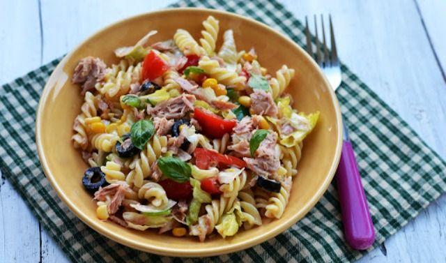 Mod de Preparare: Fierbeti pastele intr-o apa fierbinte cu sare. Pentru dressing, amestecati toate ingredientele cu sare si piper, puneti pastele, ardeii, tonul, ceapa, rosiile si presarati busuioc. Lasati la rece putin apoi serviti cu lamaie si rucola.