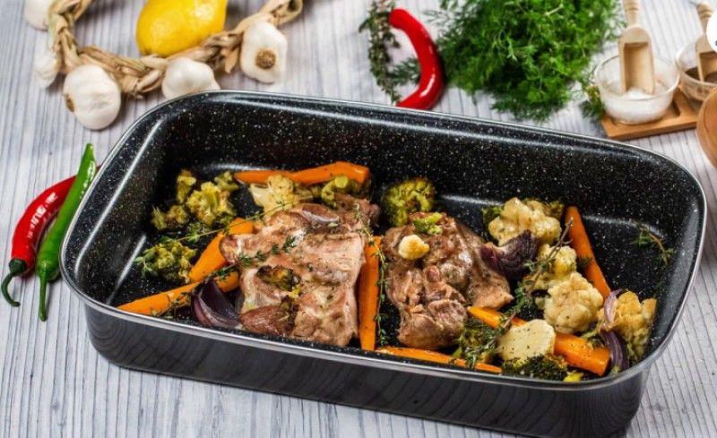 Mod de Preparare: Crestati pulpa de curcan de cateva ori apoi asezati-o intr-un vas de cuptor. De jur imprejur puneti cartofii taiati cuburi, morcovul feliat, ceapa taiata in bucati mari, ciupercile taiate in 4 cateii de usturoi rosiile chery intregi si crengutele de rozmarin. Sfaramati cubul de legume peste carne, adaugati o cana de apa calduta si potriviti de sare si piper. Acoperiti vasul cu folie de aluminiu si puneti la cuptor la 180C/350F/gaz4 pentru o ora, indepartati folia de aluminiu pentru ultimele 20 de minute de stat la cuptor. Taiati pulpa de curcan in felii potrivite si serviti alaturi de legumele la cuptor.