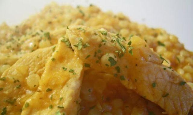 Mod de Preparare: Taiati legumele si puiul in cubulete. Într-o tigaie, puneti uleiul si caliti rapid puiul, morcovul, dovlecelul și ardeiul. Condimentati cu sare, piper și curcuma (dupa gust). Se amesteca bine. Puneti putina apa si acoperiti (lasati capacul pe jumatate deschis). Gatiti aproximativ 10 minute. Asigurati-va ca totul este gatit. Pregatiti cuscusul dupa metoda de preparare: 50 gr de cuscus la 50 ml de supa fierbinte. Se amesteca totul apoi serviti. Rapid si gustos!