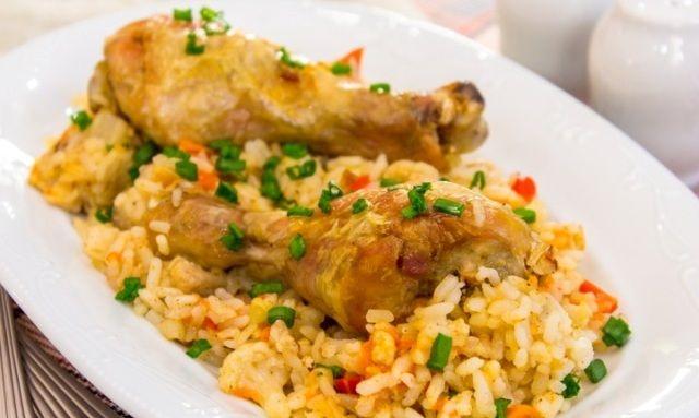 Mod de Preparare: Se pune uleiul in tava si se aseaza pulpele de pui peste. Se toarna orezul spalat in tava si se aseaza ceapa taiata rondele peste. Se adauga supa de pui sau apa cu cubul. Se da la cuptor si se completeaza cu apa daca e nevoie. Din cand in cand se stropes pulpele cu apa ca sa nu se usuce. E gata cam dupa o ora sau cand pulpele sunt rumenite.