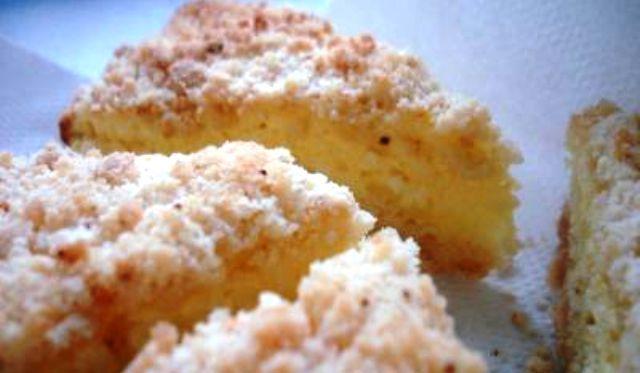 Mod de Preparare: Untul la temperatura camerei l-am amestecat cu zaharul. Nu e necesar sa amestecati pana la dizolvare. Faina cu praful de copt (in prealabil amestecate) le-am turnat peste unt si cu buricele degetelor am "lucrat" acest amestec pana am obtinut un bol cu faramituri. La umplutura nu am respectat intocmai reteta de baza si mai exact: albusurile trebuiau separate de galbenusuri si batute spuma ca sa-i dea o consistenta mai pufoasa umpluturii.... Insa din lipsa de timp aceasta etapa am "sarit-o" si am adaugat ouale intregi direct in umplutura. Voi in schimb, daca dispuneti de mai mult timp puteti respecta reteta de baza. Deci, ouale le-am amestecat cu zaharul si ulterior am adaugat branza. Tava o tapetati cu hartie de copt si turnati uniform jumatate din cantitatea de faramituri. Peste, turnati umplutura si acoperiti cu restul de faramituri. In cuptor (peincalzit in prealabil) tineti prajitura cca 25-30 minute la 180 de grade, pana capata suprafata o tenta aurie. Pofta buna!!
