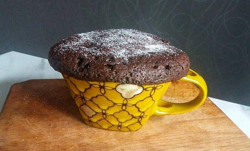 Mod de preparare: Combina ingredientele uscate: făina, zahărul, cacaua, zahărul vanilat și praful de copt. Adaugă acum oul, laptele și uleiul. Mixează până ce obții un amestec omogen. Pregătește cana vedetă, în care te vei bucura de noua ta prăjitură preferată. Toarnă în ea jumătate de compoziție, adaugă ciocolata mărunțită și presară peste restul preparatul. Pune la microunde pentru circa 3-4 minute.