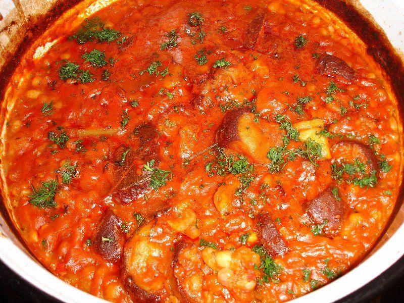 Mod de preparare: Punem la inmuiat fasolea de seara, iar dimineata o scurgem si o punem la fiert in apa suficienta. Punem alta oala cu apa la fiert in acelasi timp, ca s-o avem pregatita. Si ca sa fie aragazul plin, punem si ciolanul la fiert timp de vreo 30 de minute (daca aveti unul fiert si afumat), pana se desprinde usor de pe os. Cand e fiert, il lasam sa se raceasca cat sa-l putem tine si taiem fasii.